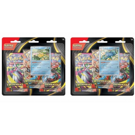 Cada blister incluye 3 sobres de expansión del juego de cartas coleccionables Pokémon, con increíbles cartas de Pokémon Megaevolución, entrenadores y energías especiales.
