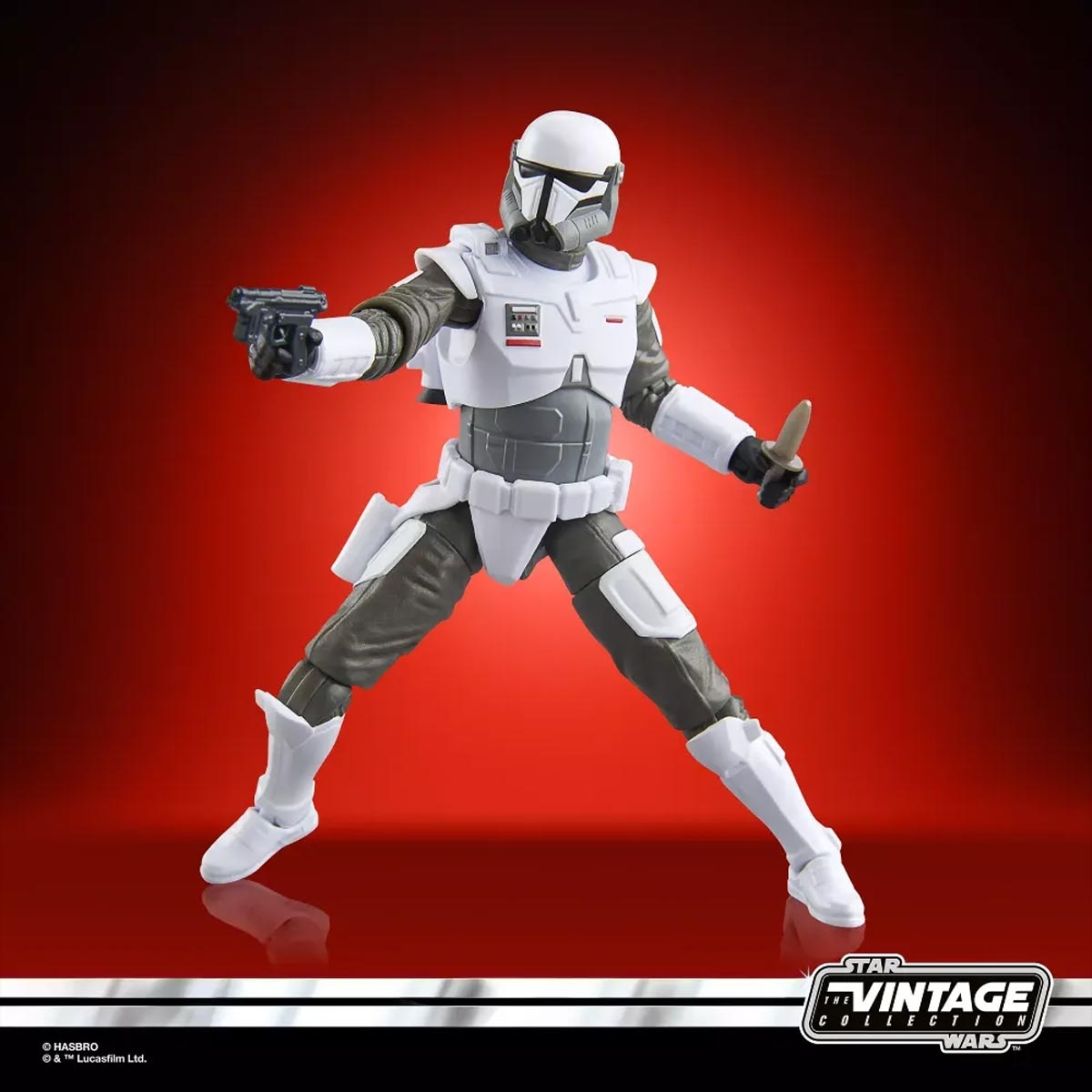 Inspirado en la exitosa serie The Mandalorian, el Imperial Armored Commando llega a la Vintage Collection en escala de 10 cm con un nivel de detalle excepcional. Estos comandos imperiales de élite, reforzados con armadura pesada y entrenados para misiones de alto riesgo, representan la fuerza implacable del remanente del Imperio tras la caída de Palpatine.