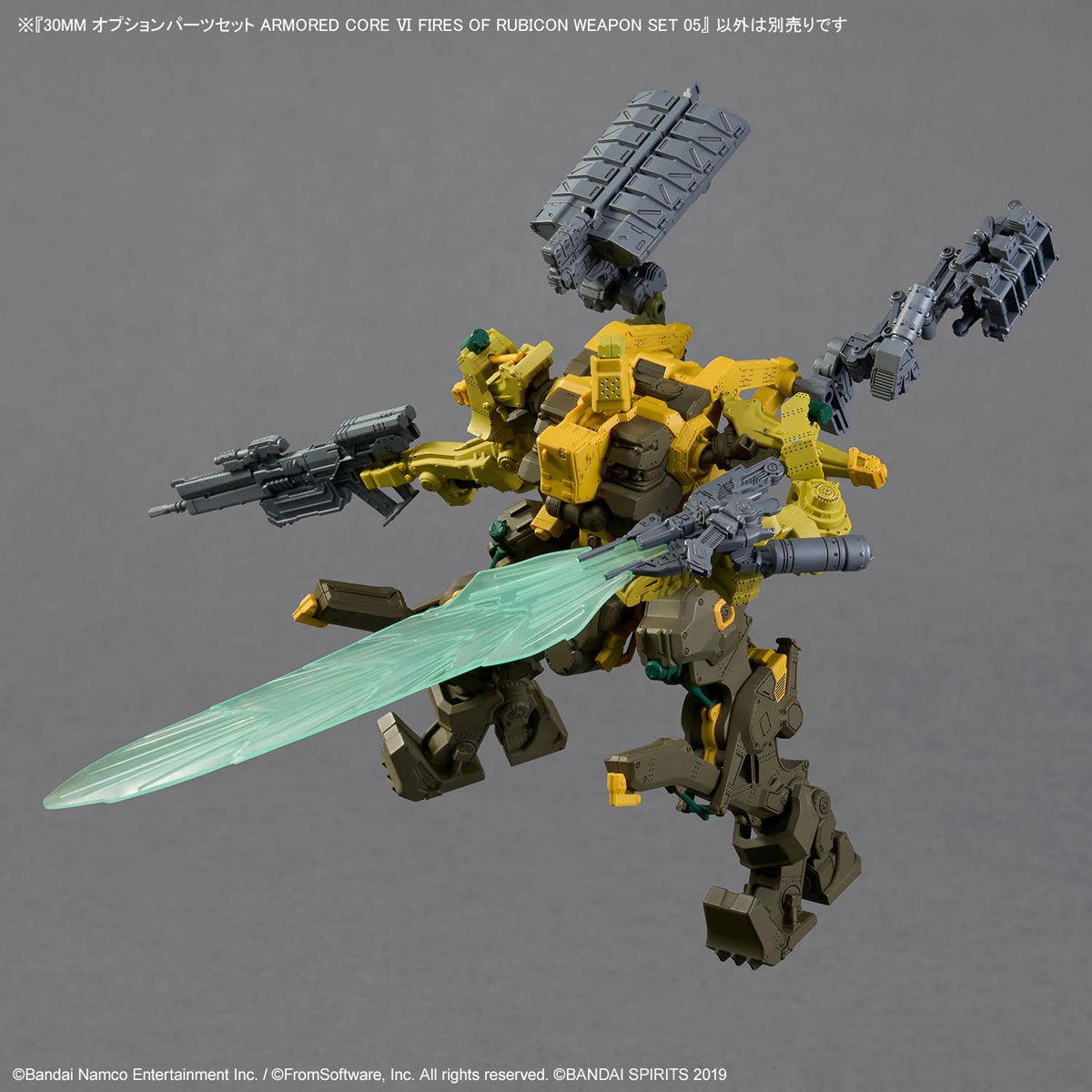 El 30MM Armored Core VI Weapon Set 05 amplía las posibilidades de personalización de tus mechas con un arsenal completamente nuevo inspirado en Armored Core VI. Este set de Bandai incluye armas de alta potencia, escudos y accesorios modulares compatibles con todos los modelos 30MM, permitiendo crear configuraciones únicas y realistas. Cada pieza destaca por su excelente acabado y versatilidad para recrear batallas intensas o exhibir tus diseños personalizados.